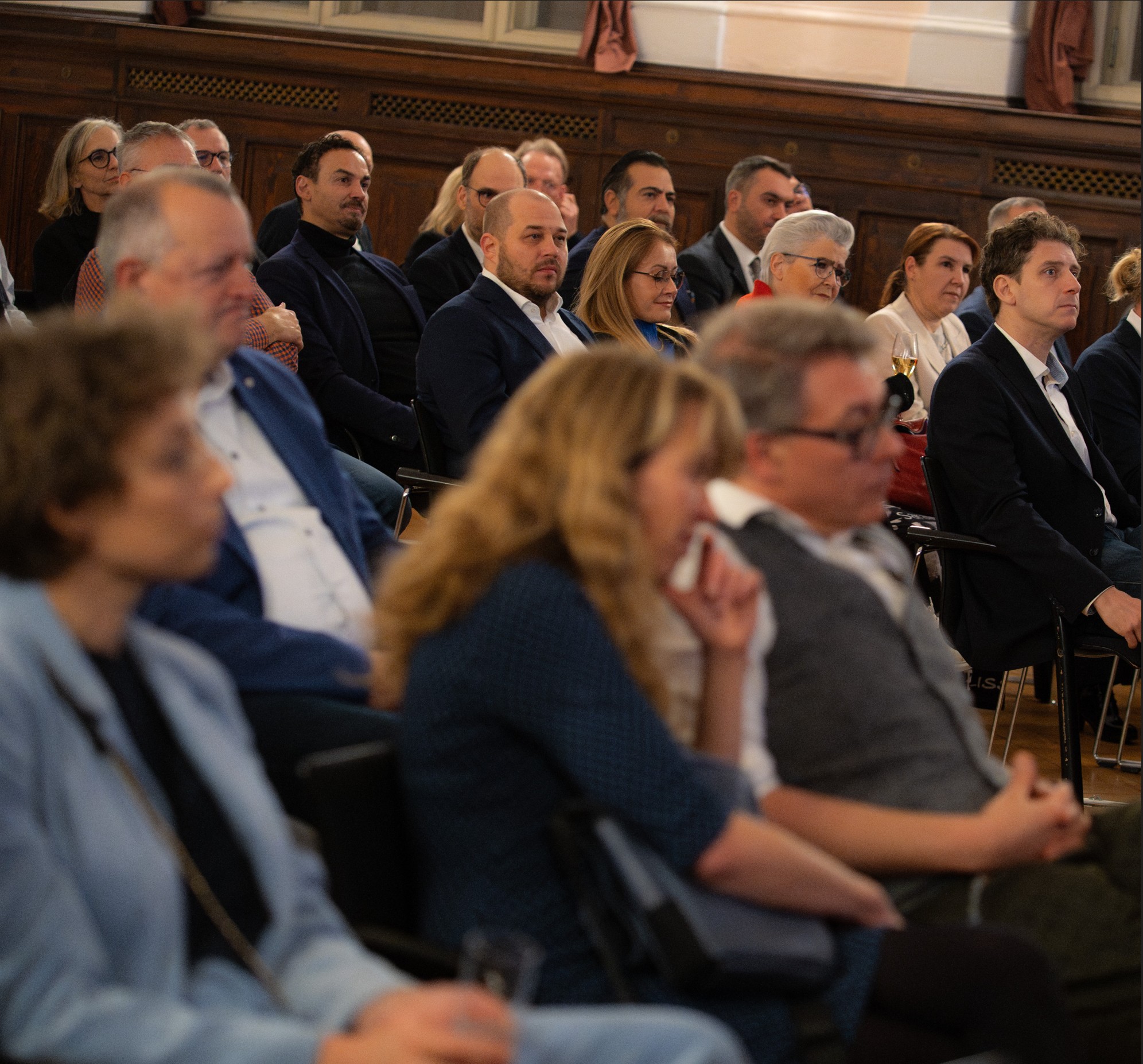 Die Runde, die der WKHL-Vorstandsvorsitzende Karsten Dietrich im Festsaal des Evangelischen Krankenhauses Königin Elisabeth Herzberge begrüßen konnte, hätte kaum hochkarätiger sein können. Direkt aus Brüssel reiste die Europa-Abgeordnete Gaby Bischoff an. Die Bundestagsabgeordnete Janine Böttger unterbrach sogar die Sitzung des Plenums, um zum Wirtschaftsdinner zu kommen. Mit Prof. Dr. Eckart Stratenschulte konnte der Wirtschaftskreis einen der renommiertesten Kenner Brüssels gewinnen. Und Morris Reinmüller, Referatsleiter im Auswärtigen Amt, brachte die Expertise der nationale Ebene ein. Per Video übermittelte zudem die EU-Abgeordnete Hildegard Bentele (CDU) eine Grußbotschaft an den Wirtschaftskreis.
